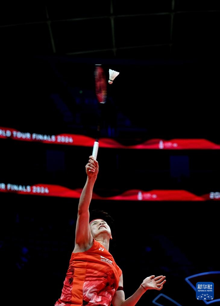 當日,在杭州舉行的2024世界羽聯世界巡回賽總決賽女單小組賽A組比賽中,中國選手王祉怡2比0戰勝泰國選手布桑南。