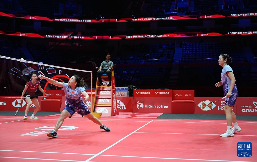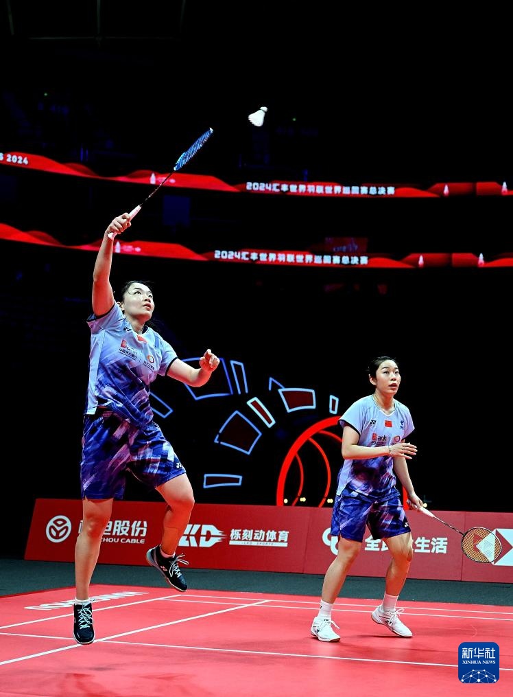 當日,在杭州舉行的2024世界羽聯世界巡回賽總決賽女雙小組賽B組比賽中,中國組合陳清晨/賈一凡2比0戰勝日本組合巖永鈴/中西貴映。