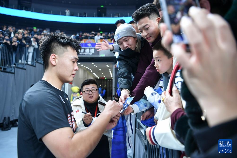 12月11日,新疆伊力特隊球員趙睿賽后為球迷簽名。