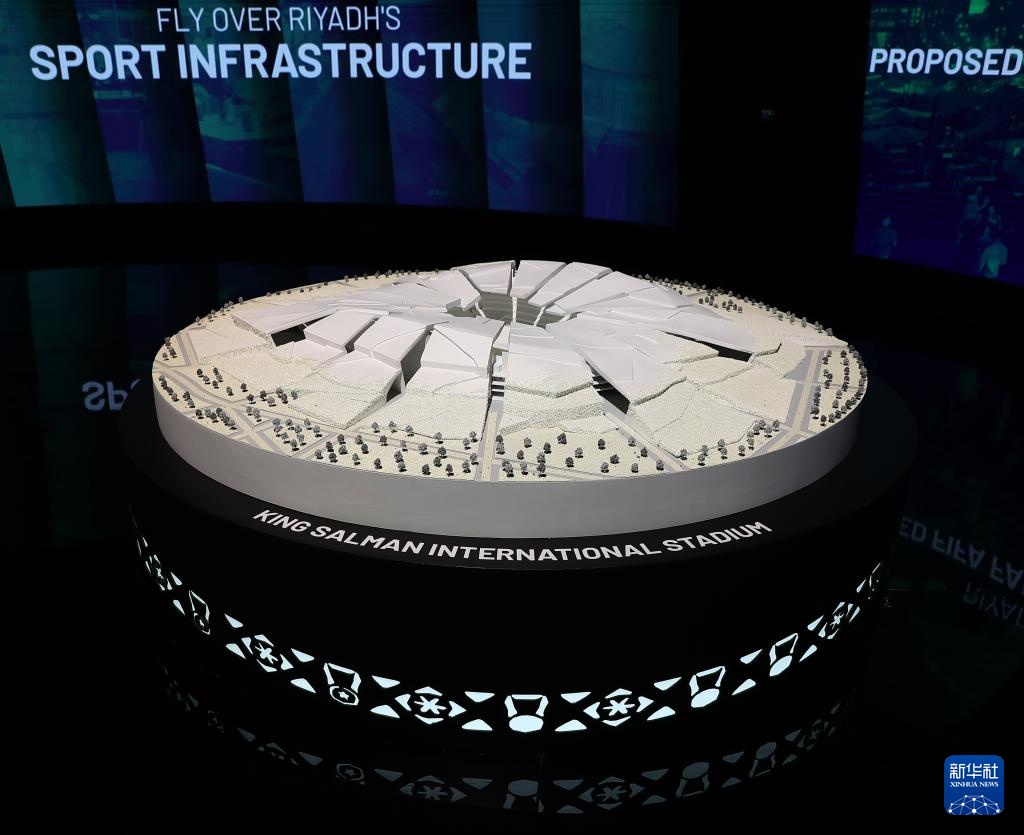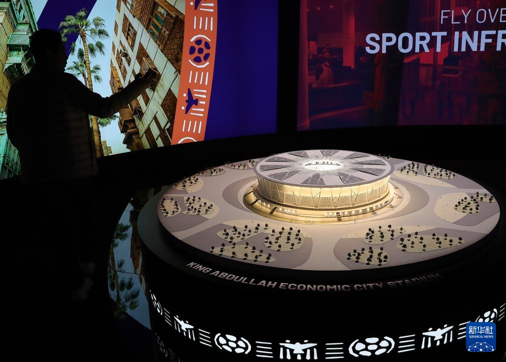 這是在沙特阿拉伯首都利雅得舉辦的2034年FIFA世界杯申辦展覽上拍攝的阿卜杜拉國王經(jīng)濟(jì)城體育場模型(12月11日攝)。
