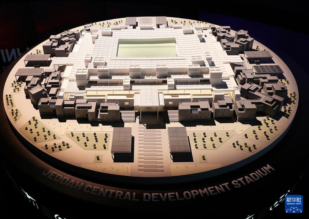 這是在沙特阿拉伯首都利雅得舉辦的2034年FIFA世界杯申辦展覽上拍攝的吉達(dá)中央發(fā)展體育場模型(12月11日攝)。