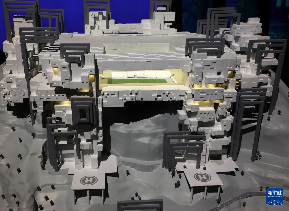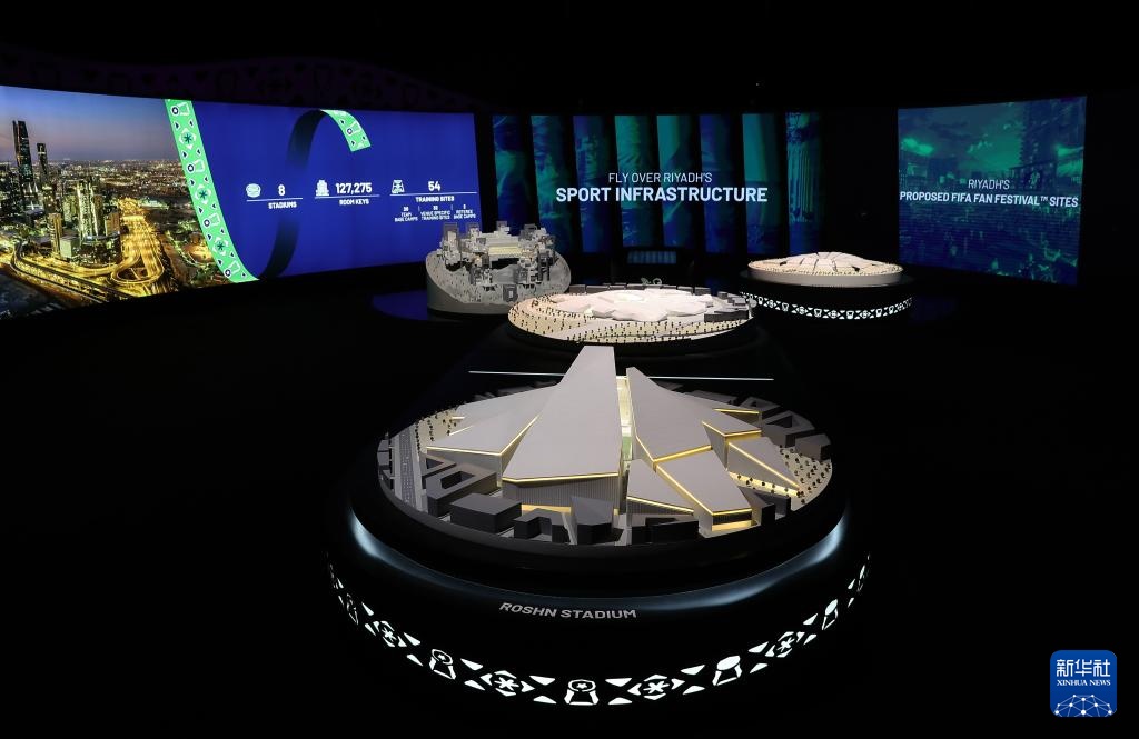 這是在沙特阿拉伯首都利雅得舉辦的2034年FIFA世界杯申辦展覽上拍攝的體育場模型(12月11日攝)。