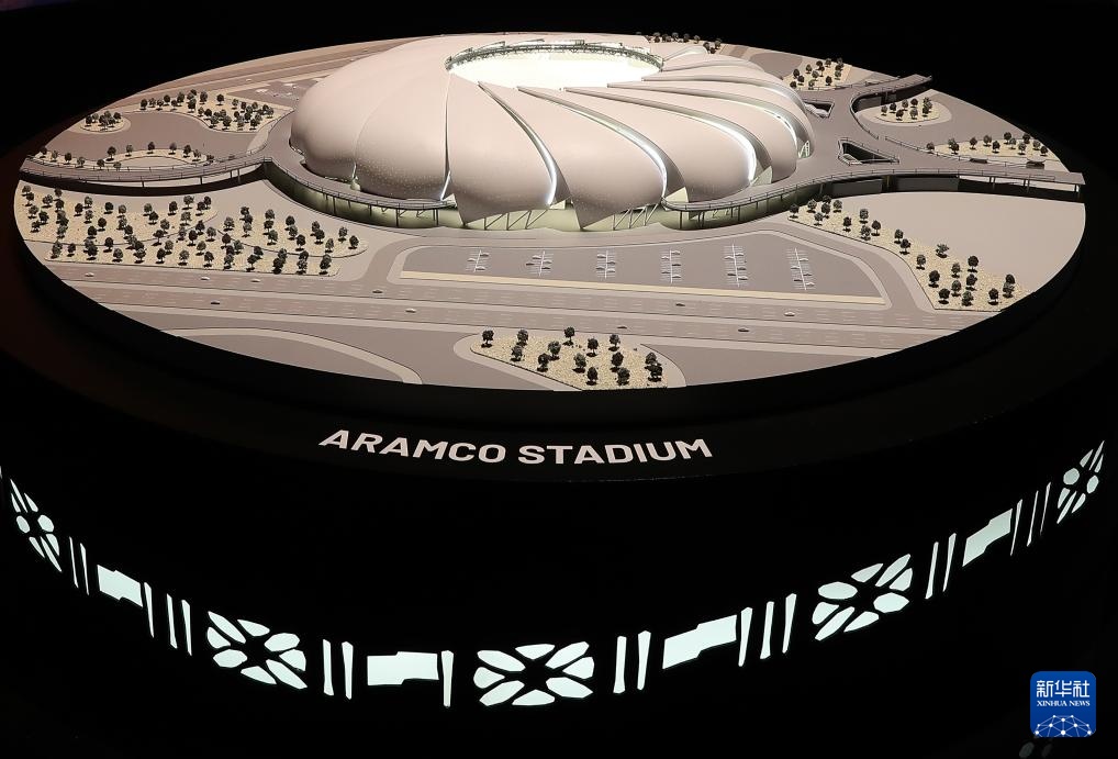 這是在沙特阿拉伯首都利雅得舉辦的2034年FIFA世界杯申辦展覽上拍攝的阿美體育場模型(12月11日攝)。
