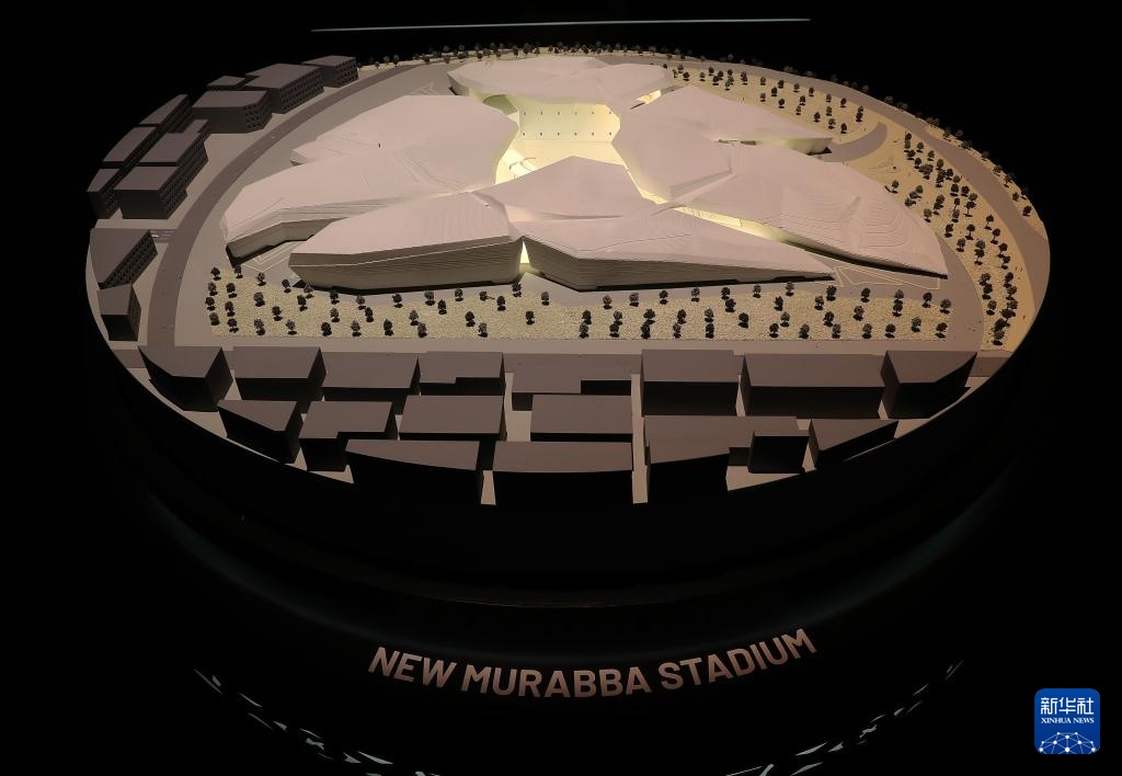 這是在沙特阿拉伯首都利雅得舉辦的2034年FIFA世界杯申辦展覽上拍攝的新穆拉巴體育場模型(12月11日攝)。