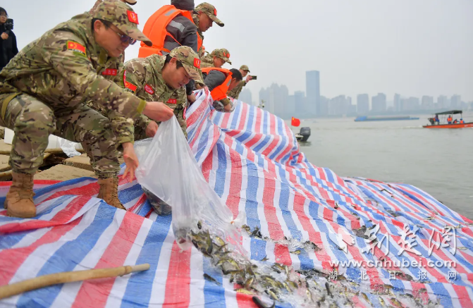 隨后,在冬季增殖放流活動中,4萬尾珍稀魚苗被投放入長江。這些魚苗將扎根長江水域,繁衍生息,充實漁業種群,助力鞏固提升長江水域生物多樣性。未來,武漢市退役軍人“長江衛士”將與武漢市河湖長辦公室加強溝通協調,充分發揮退役軍人優勢,深度參與河湖日常巡查、水岸垃圾清理、環保科普宣傳等志愿服務活動,用滿腔熱枕守護每寸河湖,開啟軍民齊心護水新征程。