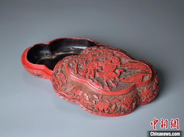 清代剔彩麻姑獻壽圖海棠盒。廣東省博物館 供圖