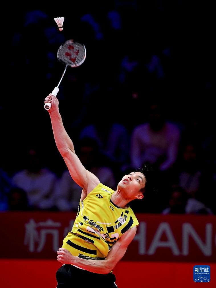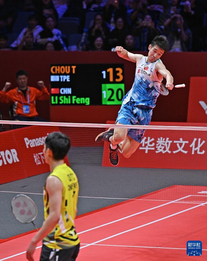當日,在杭州舉行的2024世界羽聯世界巡回賽總決賽男單小組賽A組比賽中,中國選手李詩灃2比1戰勝中國臺北選手周天成。