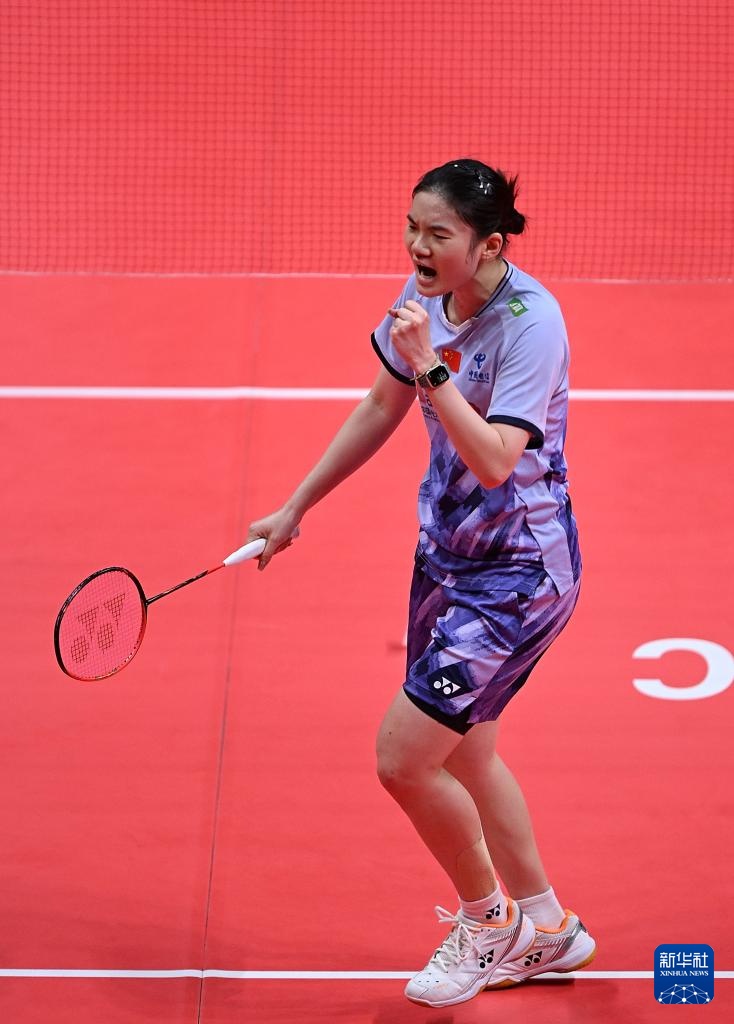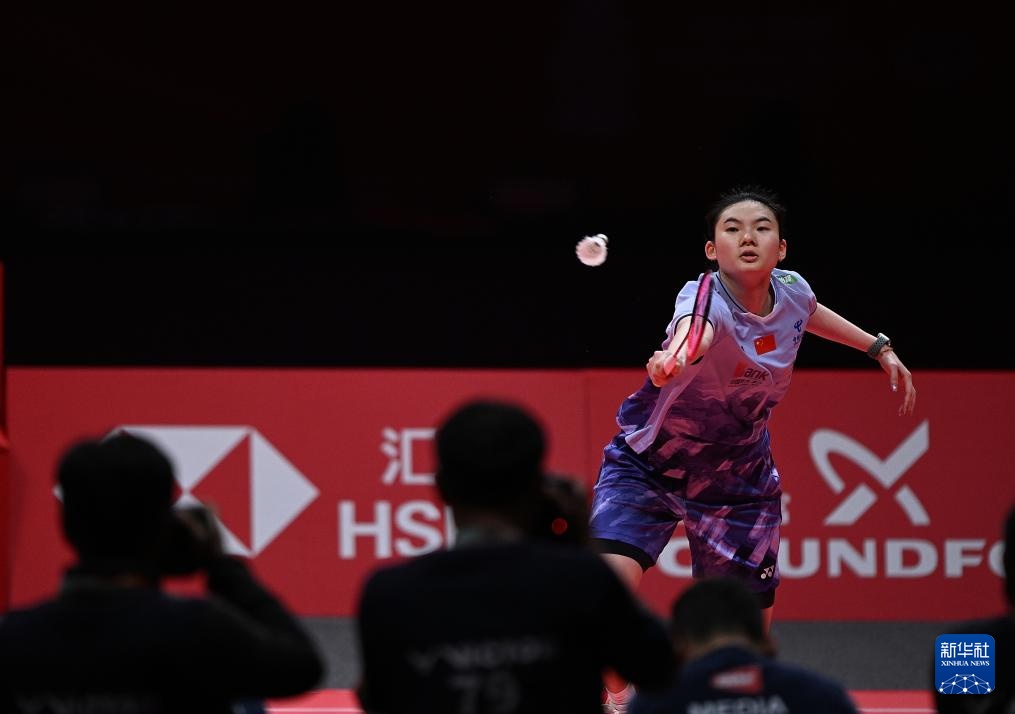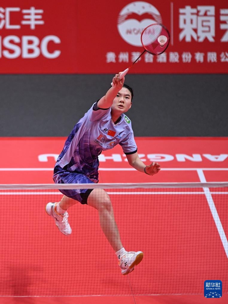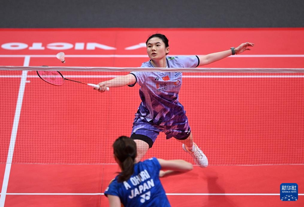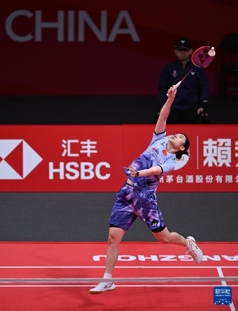 當(dāng)日,在杭州舉行的2024世界羽聯(lián)世界巡回賽總決賽女單半決賽中,中國選手韓悅2比0戰(zhàn)勝日本選手大堀彩,晉級決賽。