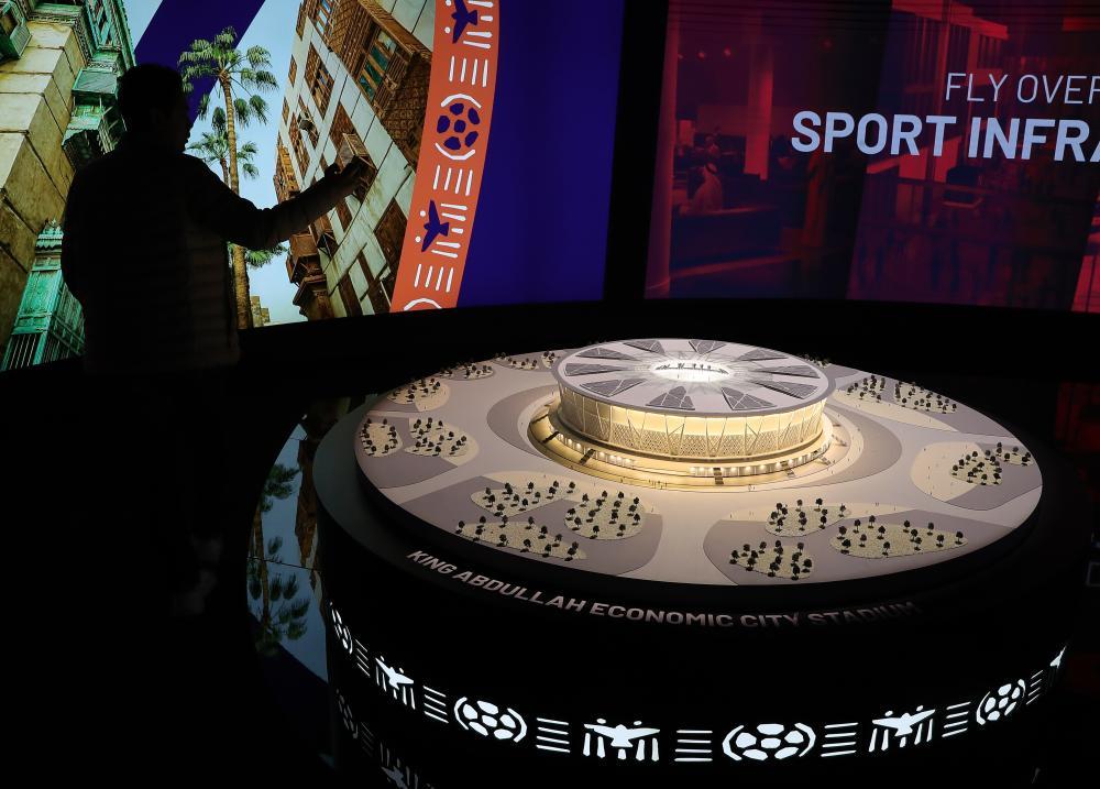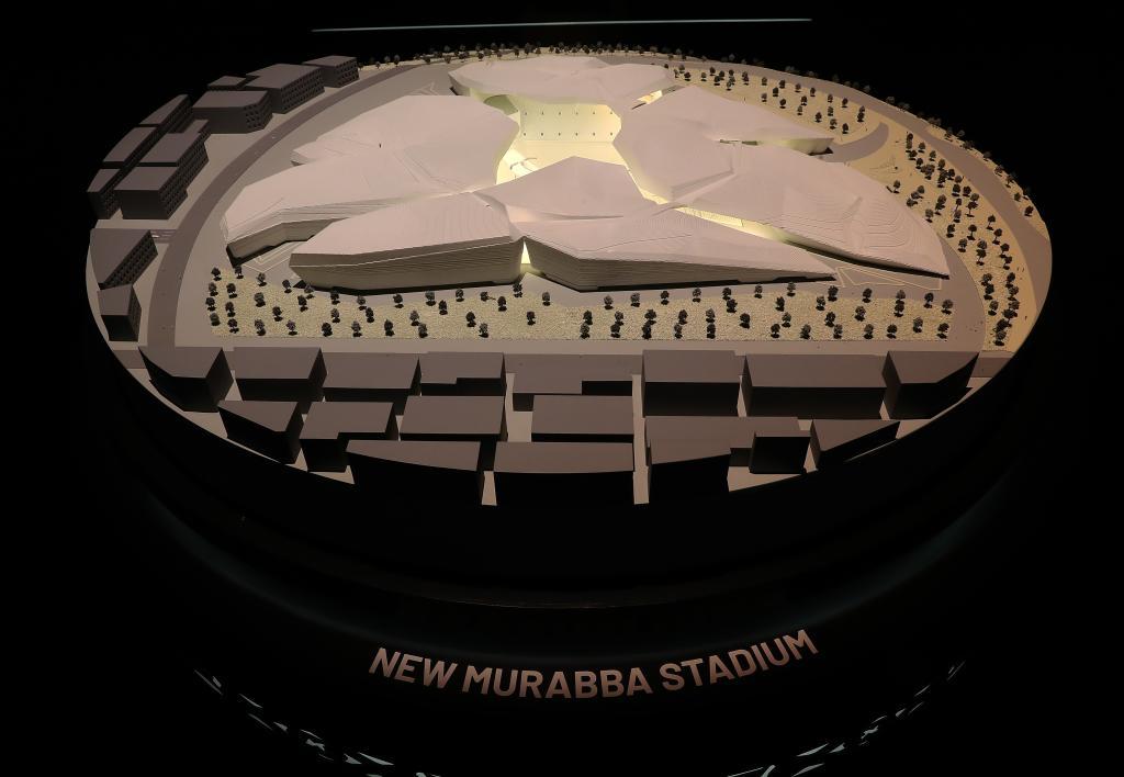 這是12月11日在沙特阿拉伯首都利雅得拍攝的新穆拉巴體育場模型。新華社記者 王東震 攝