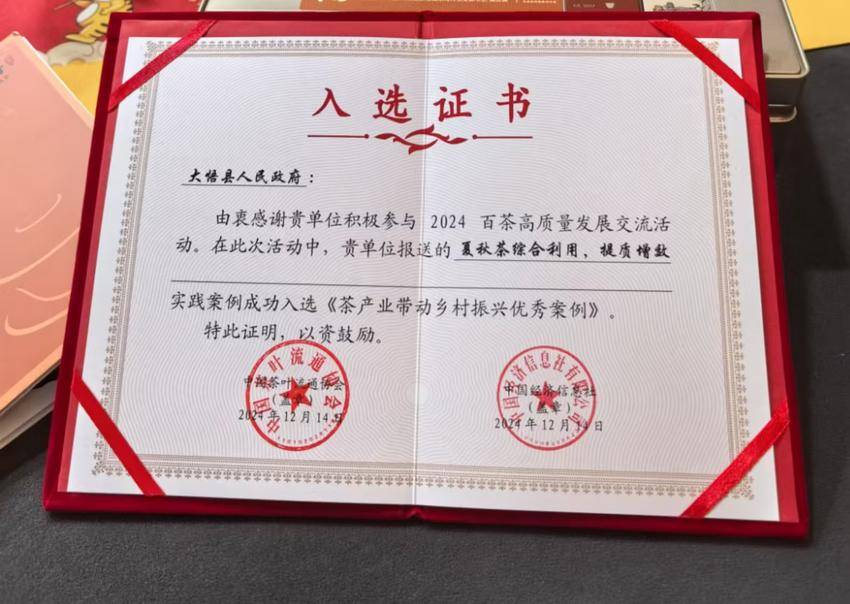荊楚網(湖北日報網)訊(通訊員 易榮波、李怡、祁玉勇)12月14日,“百茶共茗·茶都有戲”2024百茶百戲文化周暨百茶高質量發展交流活動在福建省泉州市安溪縣舉行。活動中發布百茶高質量評選結果,大悟雙福山黃茶“夏秋茶綜合利用與提質增效”實踐案例榮獲“茶產業帶動鄉村振興優秀案例”。