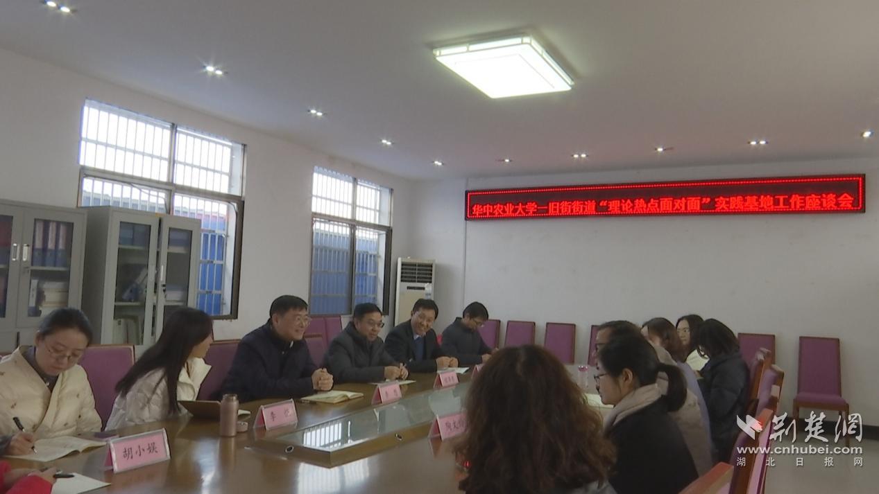 理論宣講交流結束后,武漢市委講師團、華中農業大學馬克思主義學院、新洲區委宣傳部和舊街街道四家單位圍坐一堂,座談交流兩年來武漢市“理論熱點面對面”實踐基地在新洲區舊街街道的建設情況,就下一步深化結對共建工作以及實踐基地更好惠及群眾等問題進行了研討。