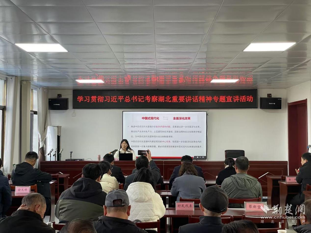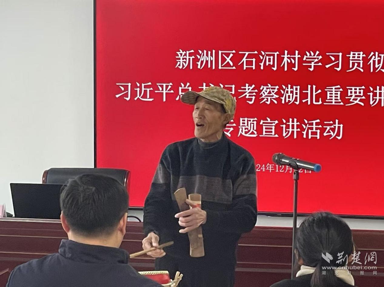 會上,非遺傳唱人羅詠洲帶來了精彩的善書表演;湖北省地方志專家庫專家徐元橋、石堤河村家庭農場創辦人曾向朋以及石河村村民代表也分別結合自身工作,分享了學習近平總書記考察湖北重要講話精神的深刻體會,展現了各類群體在鄉村振興實踐中的積極探索與思考。