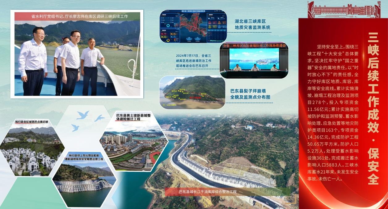 湖北省水利廳相關負責人表示,本次展覽的舉辦,不僅是對三峽工程輝煌成就的回顧和總結,更是對湖北省在三峽后續工作中所取得成績的全面展示。未來,湖北省水利廳將以習近平新時代中國特色社會主義思想為指導,全面貫徹落實黨的二十大和二十屆二中、三中全會精神,以及省委十二屆七次、八次全會精神,堅決扛牢“一江清水東流,一庫凈水北送”的政治責任,以更加堅定的決心、更加飽滿的干勁、更加扎實的措施,持續推進三峽(壩區)統籌發展和安全綜合試驗區建設,著力建設安全韌性現代水網,全面推進流域綜合治理,為加快建成中部地區崛起的重要戰略支點、奮力譜寫中國式現代化湖北篇章作出新的更大貢獻!