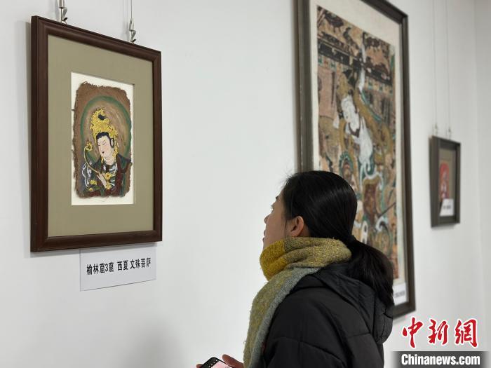中新網蘭州12月17日電(楊娜)從未去過敦煌莫高窟的李明娟17日參觀完敦煌巖彩畫書畫藝術展,對敦煌更加心向往之。熱愛繪畫的她驚嘆于畫師精湛的技藝,也為敦煌文化的獨特魅力折服。