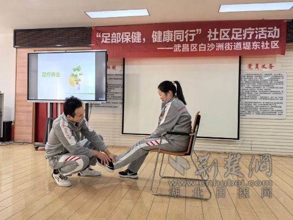 荊楚網(湖北日報網)訊(通訊員 張靜麗)為提升轄區居民對足部健康重要性的認知,并助力他們緩解疲勞,近日,武漢市武昌區白沙洲街道堤東社區開展了“足部保健,健康同行”主題活動。