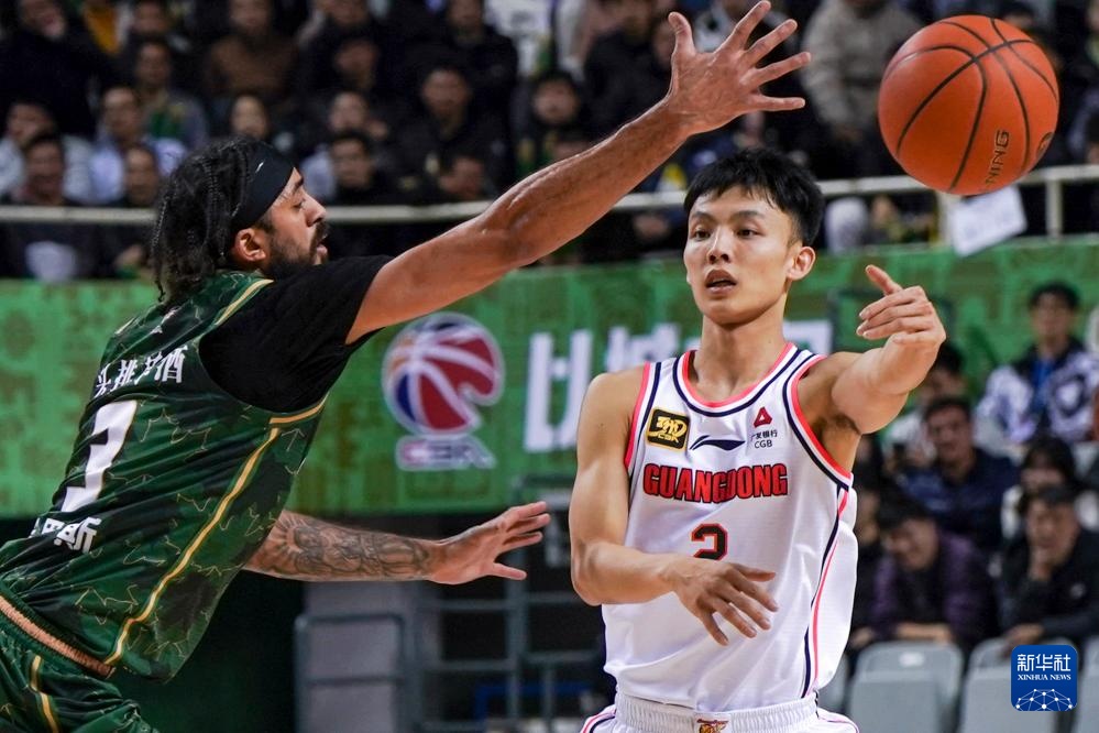 12月18日,廣東東陽光隊球員徐杰(右)在比賽中傳球。新華社記者 李博 攝