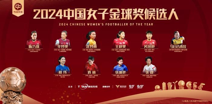 2024年度中國女足國家隊沒有國際大賽,中國女子金球獎的候選者考量更多源于俱樂部層面的表現。“海外軍團”中,在英格蘭站穩腳跟的李夢雯和沈夢雨、在法國第戎越踢越好的王妍雯和吳澄舒,當仁不讓地入選。烏日古木拉也因上半年度在澳大利亞聯賽的出色表現而被評委會提名。國內聯賽中,“女超五連冠”武漢車谷江大的隊長姚偉和攻擊核心、上屆女子金球得主張琳艷,以及廣東女足異軍突起的功臣陳巧珠和聯賽最佳射手袁叢均榜上有名。35歲的老將張睿寶刀不老,在國家隊起到傳幫帶作用的她同樣獲得了入圍資格。