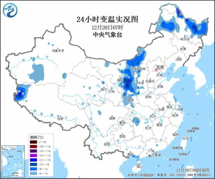 中新網(wǎng)12月20日電 據(jù)中央氣象臺網(wǎng)站消息,監(jiān)測顯示,今7時較昨7時,新疆南部、西藏西部、內(nèi)蒙古中部和東北部、黑龍江北部、寧夏、陜西、山西西部等地部分地區(qū)氣溫下降4~8℃,局地降溫幅度超過10℃。降溫過后,今晨最低氣溫0℃線位于陜西南部、湖南中部、江西南部、福建西部、浙江南部一線。