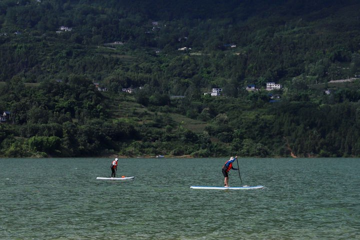 2023年7月29日,槳板選手在湖北省恩施土家族苗族自治州清江賽場訓練。