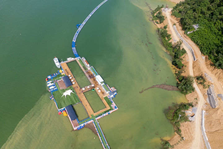 這是2023年7月29日拍攝的湖北省恩施土家族苗族自治州清江景江水上運動中心(無人機照片)。均為本報記者杜子璇攝