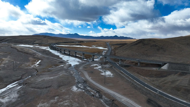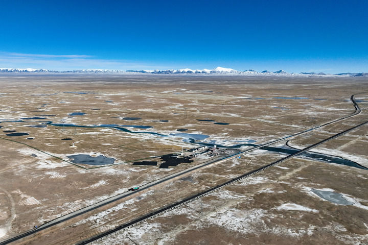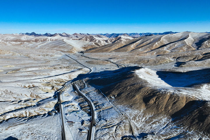 這是12月1日在開心嶺拍攝的青藏公路與青藏鐵路。新華社記者 張龍 攝