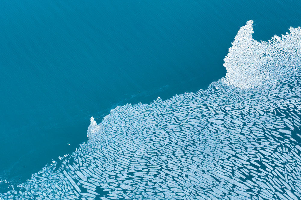 這是2024年4月11日在青海湖拍攝的部分未融化的湖冰(無人機照片)。新華社記者 張龍 攝