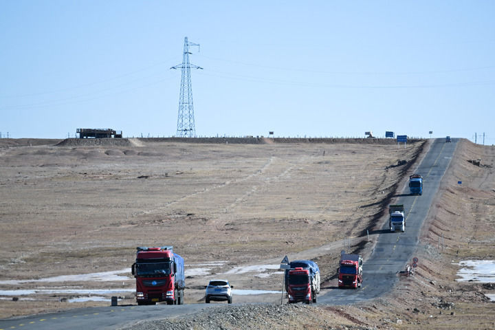 12月1日,汽車行駛在五道梁附近的青藏公路上。新華社記者 張龍 攝