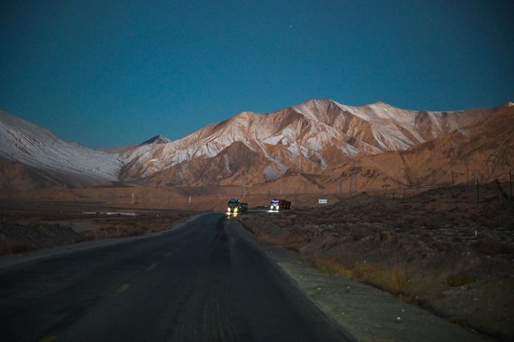 12月1日,汽車行駛在位于昆侖山腹地的青藏公路上。新華社記者 張龍 攝