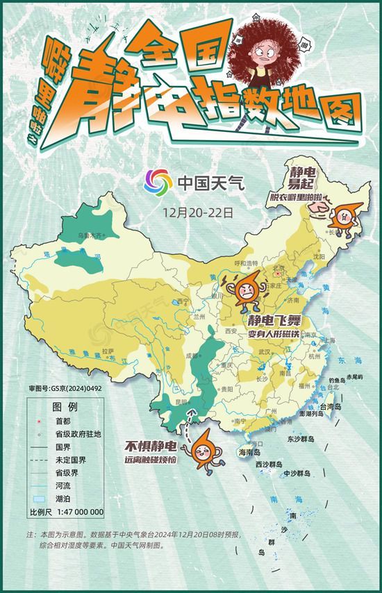 今起三天(12月20日至22日),降水依然稀少,干燥持續。從中國天氣網推出的全國靜電指數地圖來看,內蒙古西部、遼寧中西部、河北、山東中西部、山西、河南、安徽中北部、江蘇北部、廣東西部、青海、西藏和北京、天津、上海等10余省區市晴朗天氣居多,一天中的最小相對濕度在30%以下,十分干燥,上述地區的小伙伴可能會變身“人形磁鐵”,不經意間的觸碰就會引起靜電飛舞。