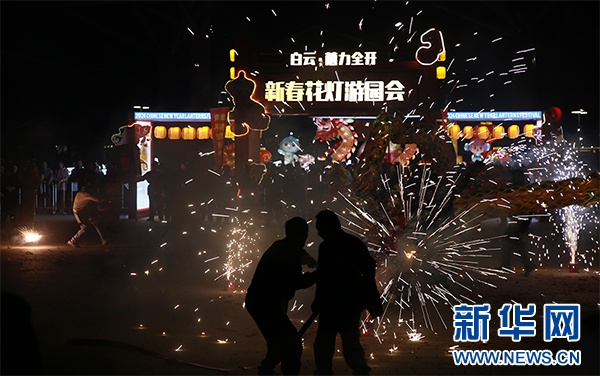 圖為2024貴陽·白云蓬萊仙界“蘑力全開”新春花燈游園會(huì)上舉行舞龍噓花民俗活動(dòng)(資料圖)。新華網(wǎng) 劉昌馀 攝