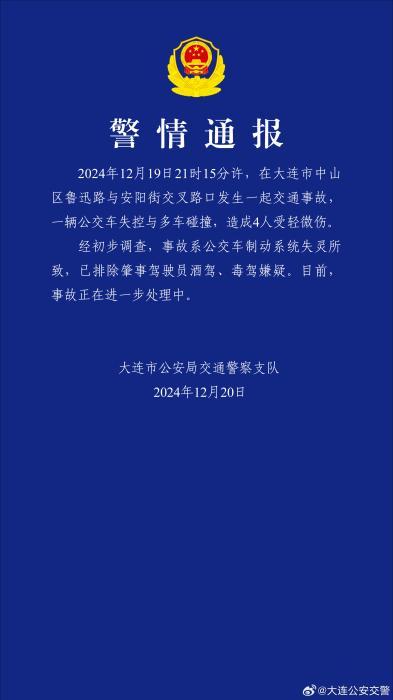 經(jīng)初步調(diào)查,事故系公交車制動(dòng)系統(tǒng)失靈所致,已排除肇事駕駛員酒駕、毒駕嫌疑。目前,事故正在進(jìn)一步處理中。