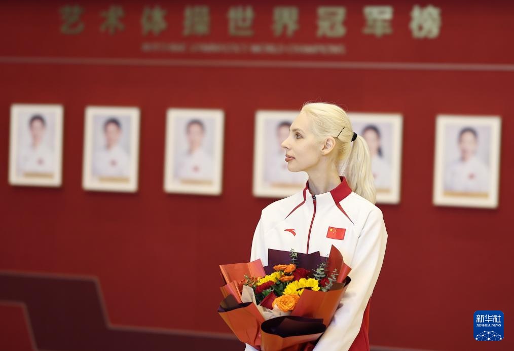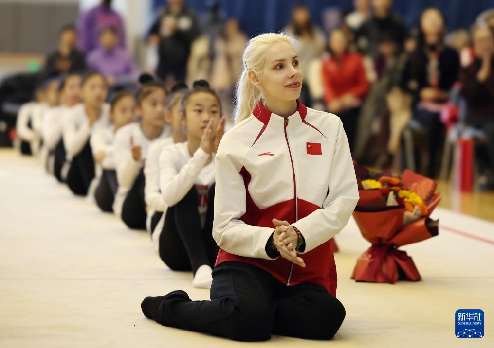 12月20日,中國藝術體操隊教練阿納斯塔西婭·布利茲紐克在登榜儀式上。新華社記者 賈浩成 攝