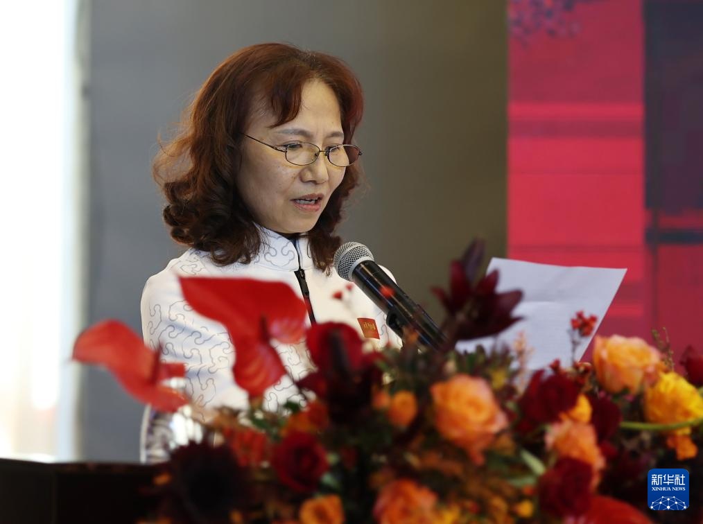 12月20日,張慧琴代表藝術體操老前輩在登榜儀式上致辭。新華社記者 賈浩成 攝