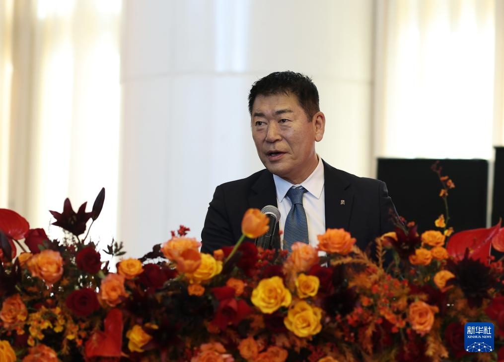 12月20日,國際體操聯合會主席渡邊守成在登榜儀式上致辭。新華社記者 賈浩成 攝