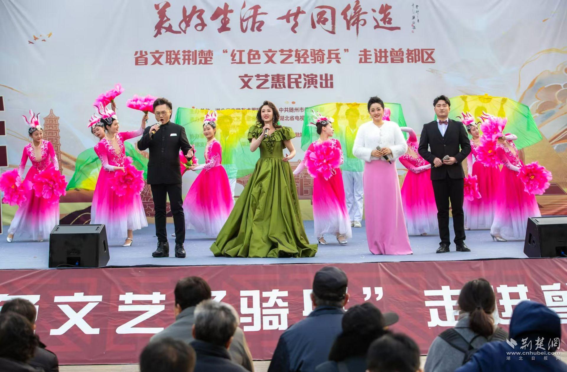 荊楚網(湖北日報網)訊(通訊員王曉飛 陳思妙)曾都古韻展風華,編鐘新聲傳四海。12月18日下午,美好生活 共同締造——省文聯荊楚“紅色文藝輕騎兵”文藝惠民演出在隨州曾都區開展,現場近千名觀眾與線上近10萬余名觀眾共享文化盛宴。
