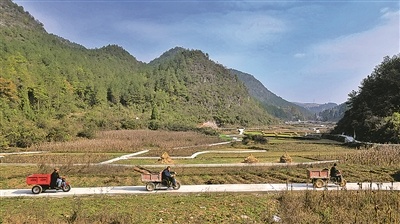 在五寨村長沖組高標準農(nóng)田里,村民田洪高正開著電動三輪車“巡視”自己的土地?!敖衲隀C耕道修好后,我就買了一臺農(nóng)用車,拉肥料、種子都方便,一天電費只花10元。”田洪高說,除機耕道外,以前的水渠也漏水嚴重,現(xiàn)在翻修水渠,引水方便,就把只能種玉米的旱地都復耕成水田,冬季還能種點蔬菜。