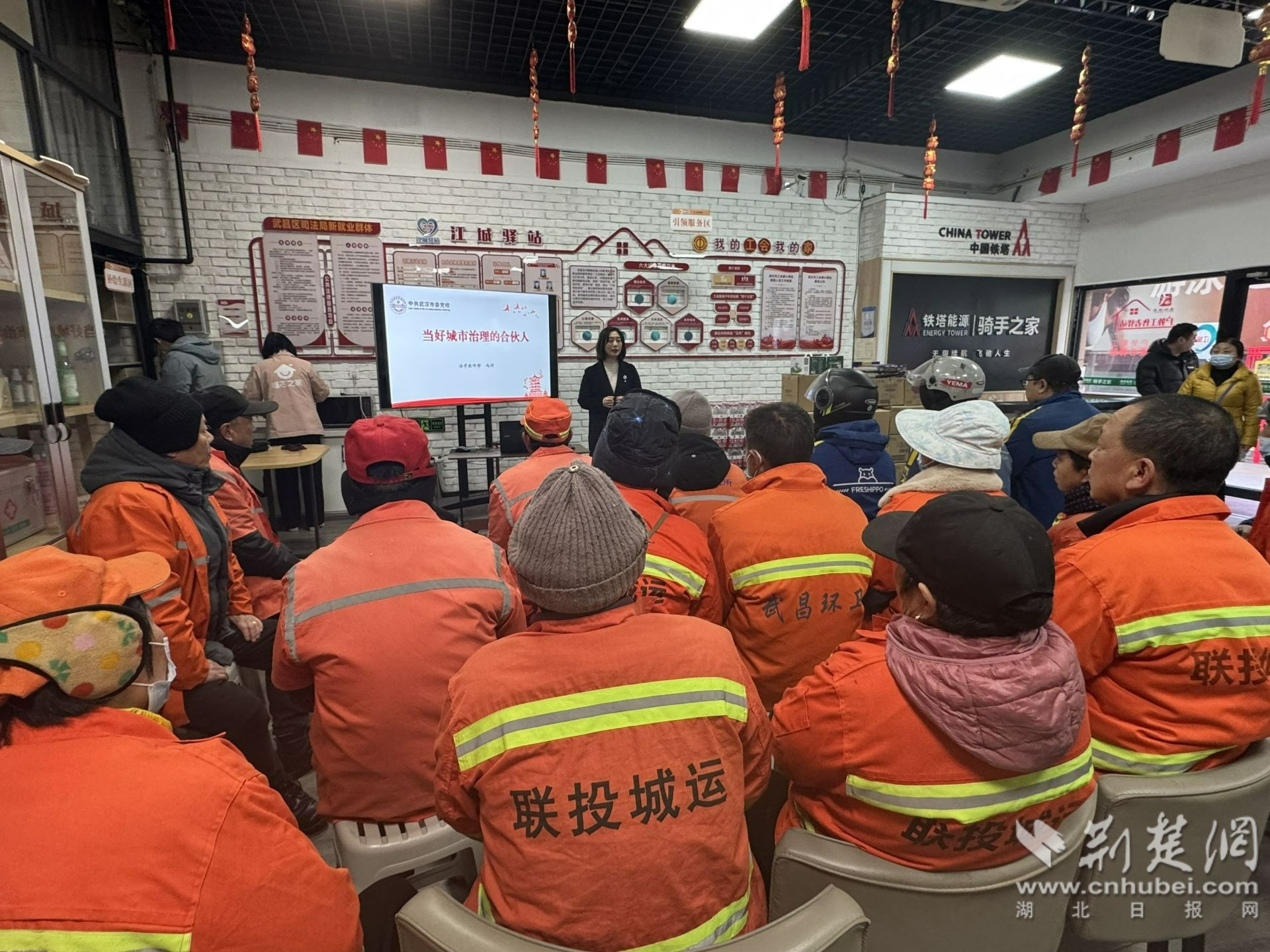 社區工會愛心驛站暖意融融,市委黨校法學教研部馮玥老師圍繞“當好城市治理的合伙人”這一主題,展開了一場別開生面的講座。她通過引用中國城市環境衛生協會“環衛作業模式創新”銀獎得主武漢市江岸環衛集團有限公司業務部主任黃鵬的先進事跡、順豐退伍軍人快遞員劉波的感人故事,展現了基層環衛職工和快遞員如何在平凡的崗位上愛崗敬業、創新工作,提升環境質量和城市形象。“城市的高速發展離不開我們的新就業群體,大家不僅是服務提供者,更可以是社會穩定的守護者?!瘪T老師向大家發出號召,鼓勵大家利用自身優勢,擔當起城市“流動網格員”的角色,通過“隨手拍”“隨時報”等形式,及時反饋安全隱患、鄰里糾紛等問題,在平凡崗位發揮重要作用,為城市治理貢獻力量。