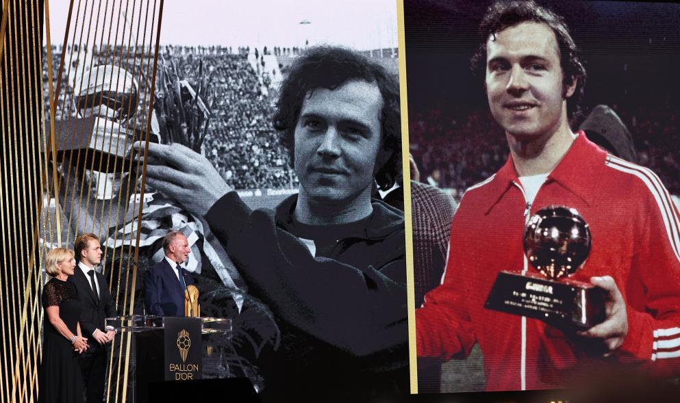 10月28日,已故德國(guó)傳奇球星弗朗茨·貝肯鮑爾的妻子和兒子領(lǐng)取組委會(huì)為其頒發(fā)的特別獎(jiǎng)。當(dāng)日,一年一度的金球獎(jiǎng)?lì)C獎(jiǎng)典禮在巴黎夏特萊劇院舉行。新華社記者 高靜 攝