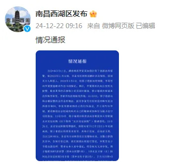 12月22日,江西“南昌西湖區發布”微博消息,南昌市公安局西湖分局、西湖區南浦街道辦事處12月22日發布情況通報: