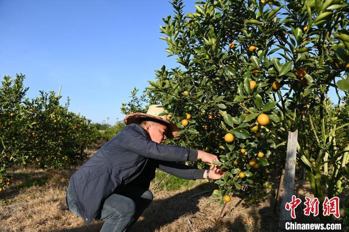 圖為黃耀在自己種植的生態脆蜜金桔果園里摘果。 記者 蔣雪林 攝