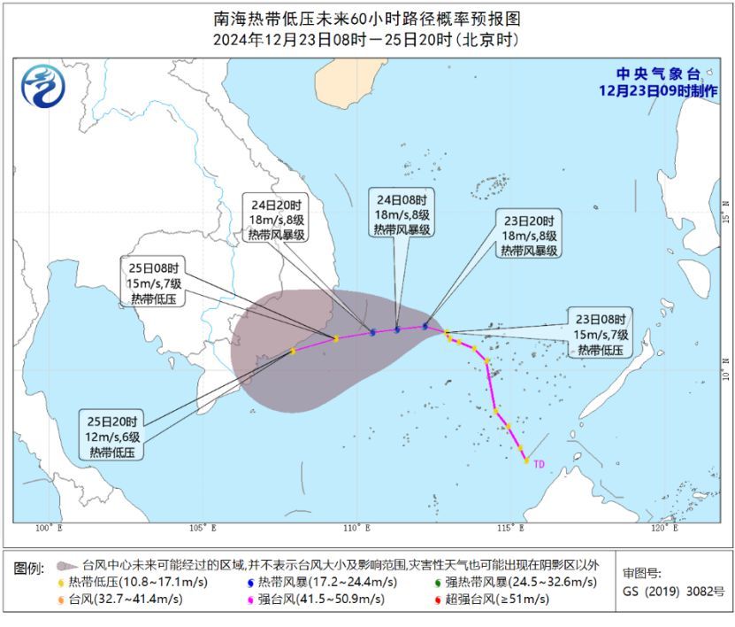 中新網(wǎng)12月23日電 據(jù)中央氣象臺(tái)網(wǎng)站消息,昨天上午,南海熱帶低壓生成。今天8時(shí),其中心位于海南省三沙市(西沙永興島)偏南方向約630公里的海面上,中心附近最大風(fēng)力有7級(jí)(15米/秒)。預(yù)計(jì),該熱帶低壓將以每小時(shí)5~10公里的速度向偏西方向緩慢移動(dòng),強(qiáng)度略有加強(qiáng),可能于未來(lái)12小時(shí)內(nèi)加強(qiáng)為今年第26號(hào)臺(tái)風(fēng),并逐漸向越南東南部沿海靠近。