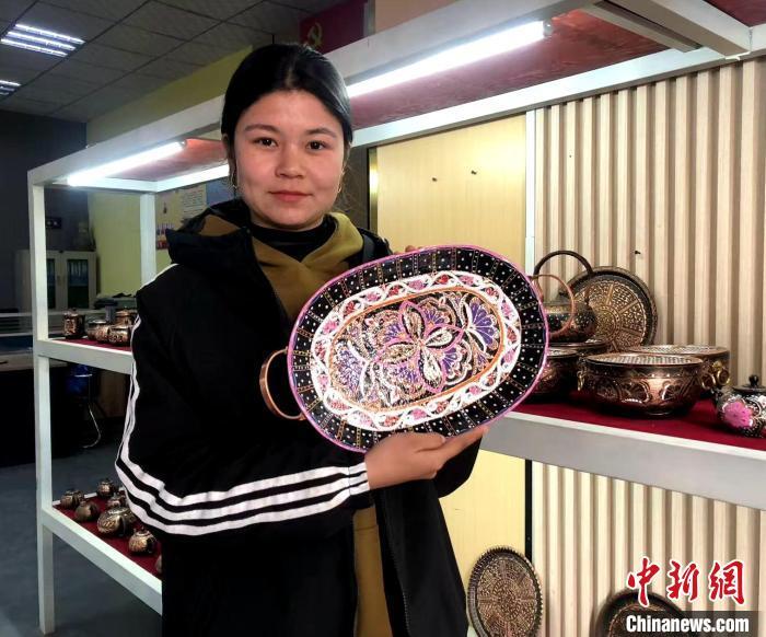 中新網烏魯木齊12月23日電 (陶拴科)冬日的清晨,在新疆和田地區洛浦縣的傳家寶手工藝品專業合作社里,“00后”女孩迪麗努爾·艾則孜和同事們正在精心制作一件件銅藝制品。