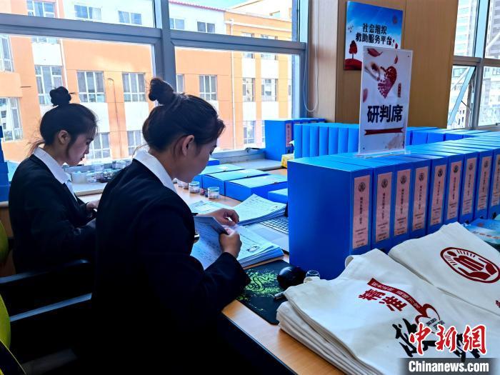 資料圖為工作人員正在核準救助對象基本資料。李雋 攝