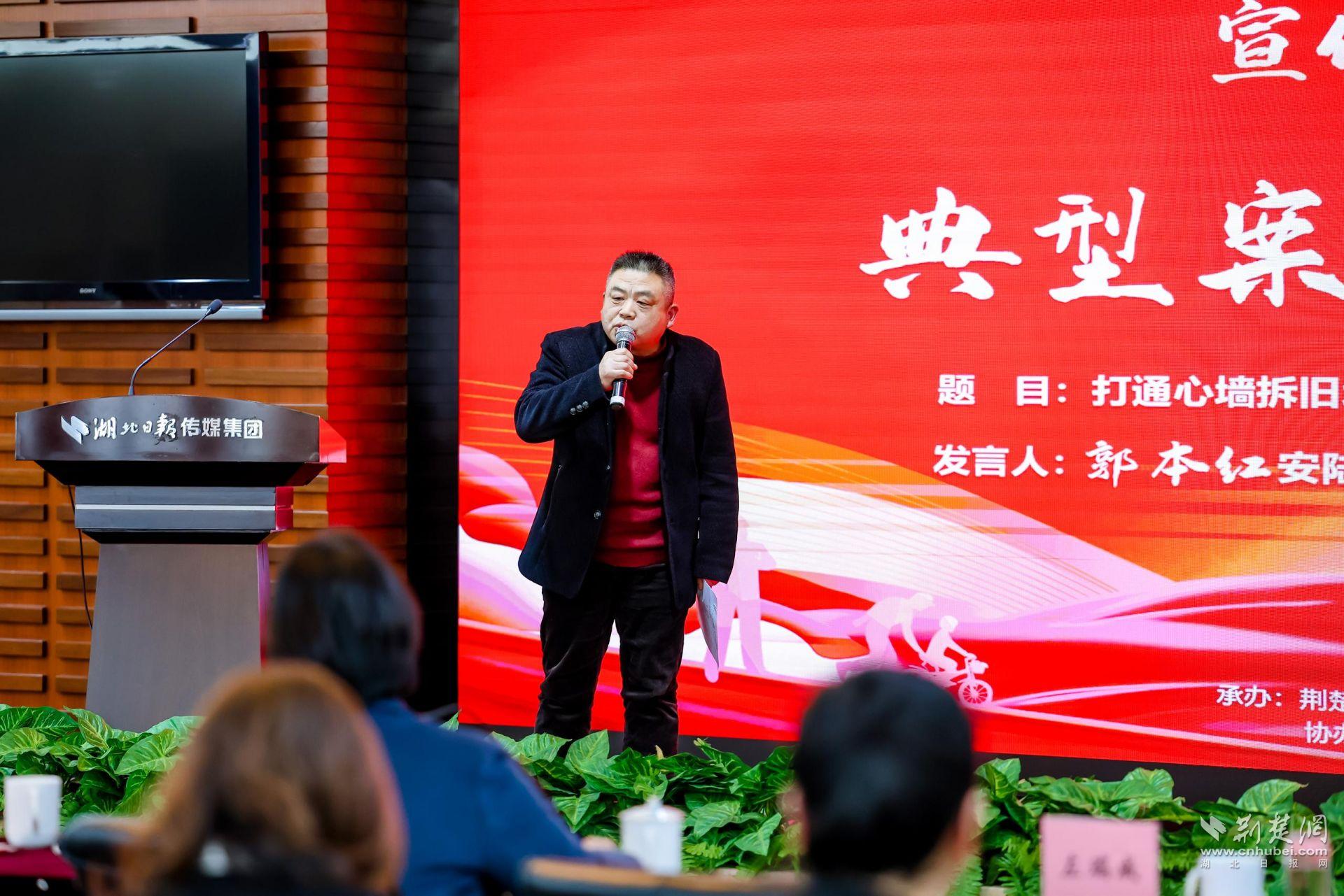 孝感市安陸市府城街道解放社區黨委書記、居委會主任郭本紅作交流分享