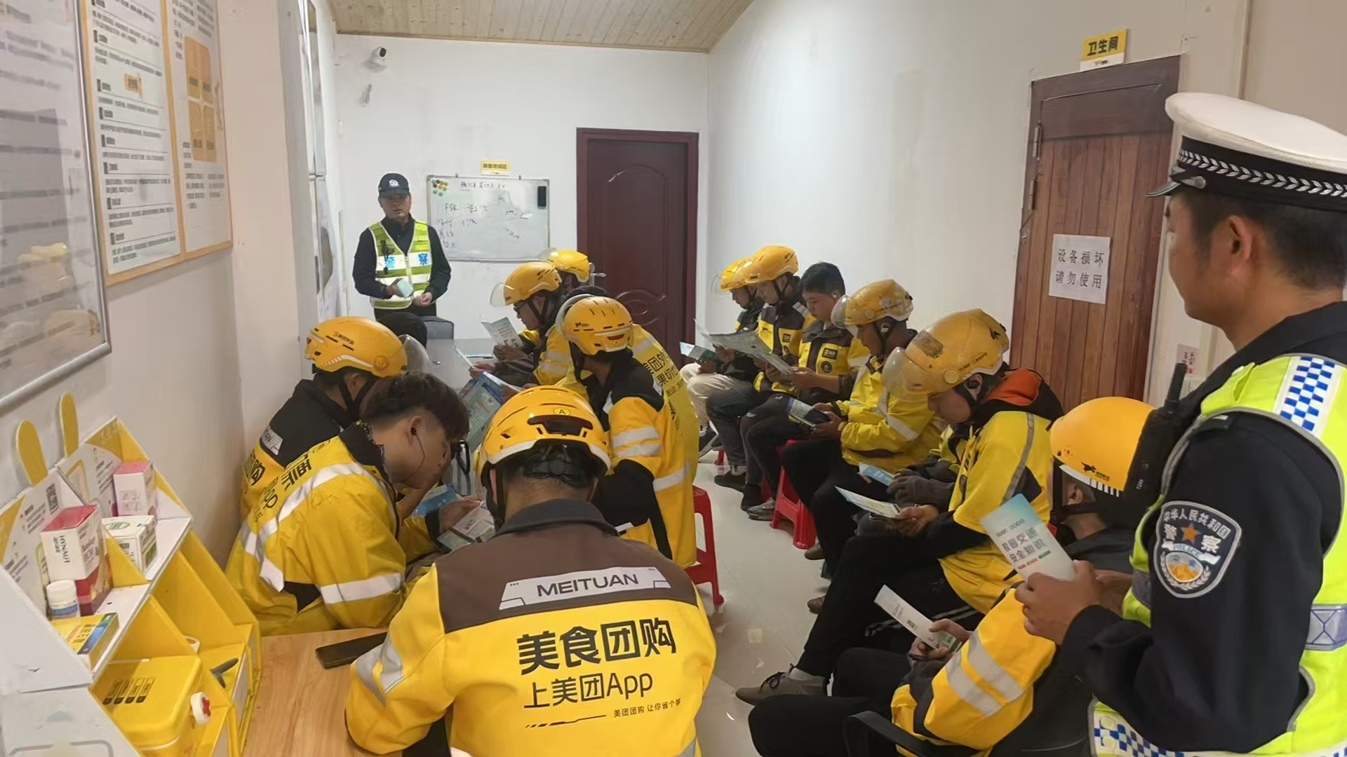 12月23日,江夏區交通大隊藏龍島中隊走進美團外賣站點開展交通安全宣傳。