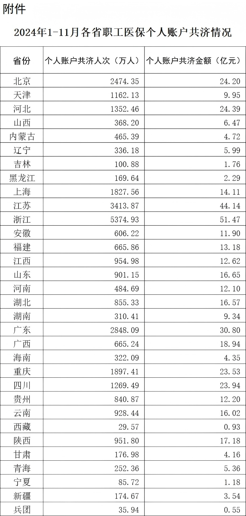 附件:2024年1-11月各省職工醫(yī)保個人賬戶共濟情況