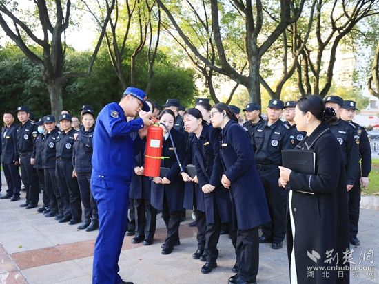 “如遇火災不要盲目逃生,要根據現場情況判斷逃生方向,逃到安全區域后要及時撥打電話報警。”在鄂州市機關事務局,消防宣傳員通過播放火災警示案例視頻,結合真實案例,對常見火災類型及原因、火災防范、逃生自救技能等五個方面進行深入淺出的講解,并帶領參訓人員開展室外消火栓和滅火器的使用培訓,詳細講解了水槍、水帶及滅火器的正確使用方法和要領,現場進行操作演示,指導參訓人員依次有序實操。