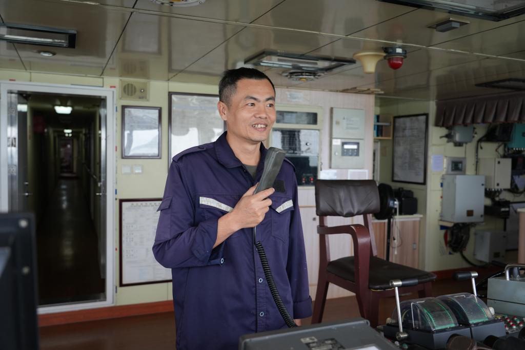 “瓊沙3號”輪黨支部書記、船長林明昌在工作現(xiàn)場。新華社記者夏天 攝