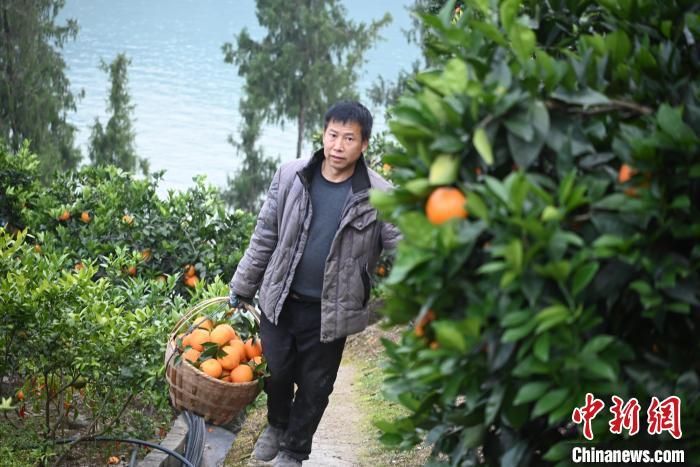 重慶巫山果農提著采摘好的柑橘走出果園。(資料圖)張旭 攝