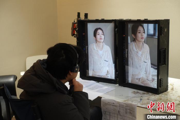 浙江橫店,一位影視工作者使用豎屏監視器導戲。(資料圖) 錢晨菲 攝